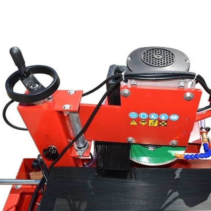 Так же есть возможность регулировать глубину торцевого пропила. Толщина пропила зависит от толщины применяемого диска. Станок снабжен системой подачи воды в зону резания.