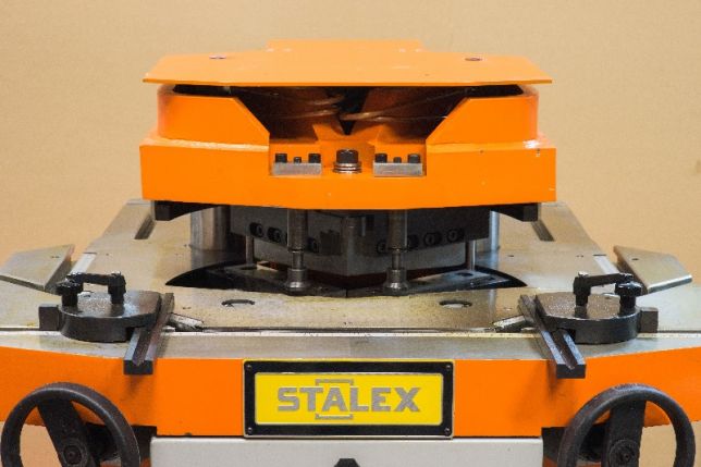 Станок угловысечной гидравлический Stalex HNM-6 - мощное оборудование с гидравлическим приводом ножей для вырубки прямых углов в листовом металле толщиной до 6.5 мм. Максимальный размер вырезаемого угла составляет 250х250 мм, тумба станка оснащена контейнером вывода стружки вниз. Управление резкой осуществляется с помощью кнопок на самом станке либо с помощью выносной педали, рабочий стол оснащен упорами для фиксации нужных размеров вырубки, объём масляного бака равен 35 л.
