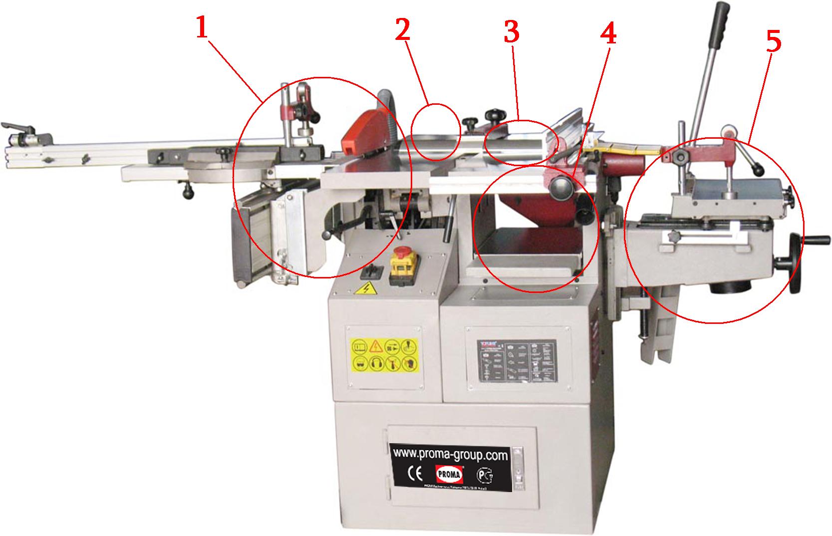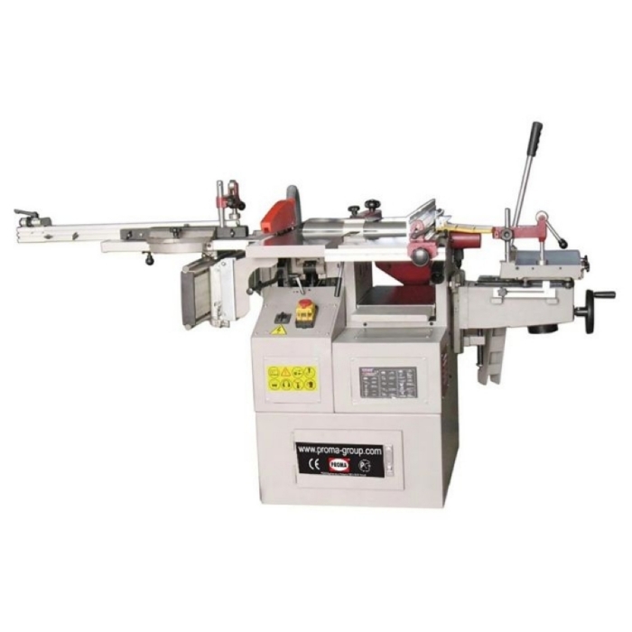 Комбинированный деревообрабатывающий станок CWM-250-5 - предназначен для обработки заготовок из различных пород дерева такими операциями как строгания в размер (рейсмус), пиление, фрезерование, фугование, а также сверление. Комбинированные станки PROMA отличаются многофункциональностью, надежностью и большим запасом мощности, долговечностью в работе. Комбинированный станок CWM-250-5 имеет: два отдельных электродвигателя, надежные рабочие столы и крепкая станина гарантируют прочность и отсутствие вибрации конструкции. Отличная точность и удобство работе (пильный диск наклоняется), подвижный легкий алюминиевый стол с ходом двигается вдоль пильного блока, гибкость и многофункциональность, пильно-фуговальный упор с суппортом, универсальный фрезерный блок, тепловую защиту и аварийный выключатель. Патрубки для подключения пылесоса для каждой операции находятся отдельно.