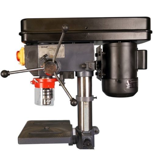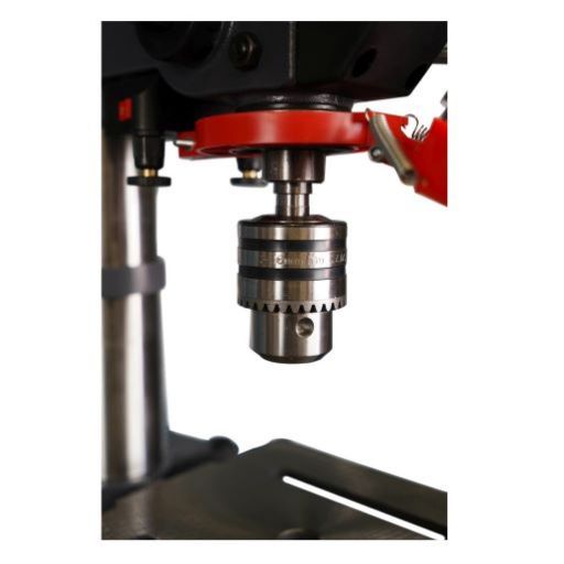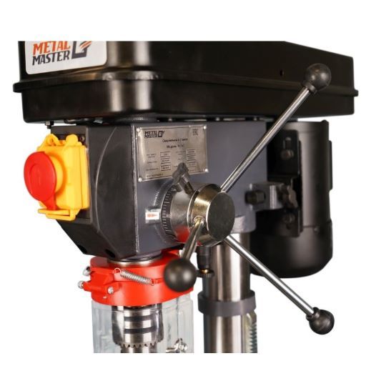 Станок MetalMaster M16D оснащен сверлильным патроном с регулируемым защитным экраном.С правой стороны сверлильной головы расположена трех-лучевая рукоятка опускания пиноли с нониусом.