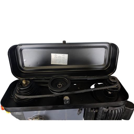 · Скорость вращения шпинделя регулируется с помощью перекидывания ремней в блоке ременных шкивов. Схема расположения ремней с диапазоном оборотов расположена под защитной крышкой кожуха.