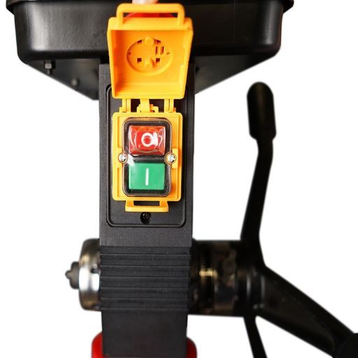 · На лицевой стороне сверлильной головы расположены кнопки включения и выключения станка с крышкой, которая также используется как аварийный выключатель.