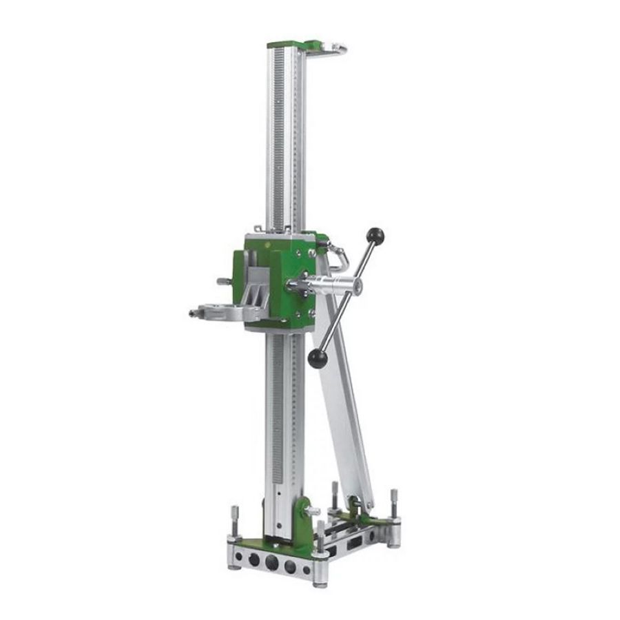 Стойка алмазного сверления Bycon DSP-252 быстросъемным креплением двигателя для сверления отверстий диаметром до 250 мм в кирпиче и легком бетоне и до 200 мм в сильноармированном бетоне. Подходит как для работы с алмазными дрелями с креплением "кольцо", так и алмазными двигателями с типом крепления "пластина".