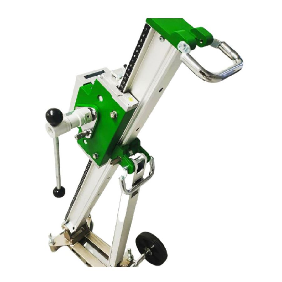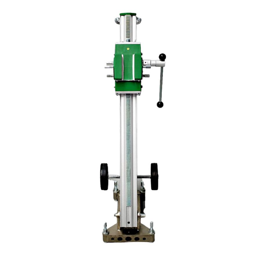 Стойка алмазного сверления Bycon DSP-352 c прочным стальным основанием для анкерного крепления, транспортировочными колесами, быстросъемным креплением двигателя для сверления отверстий диаметром до 350 мм.