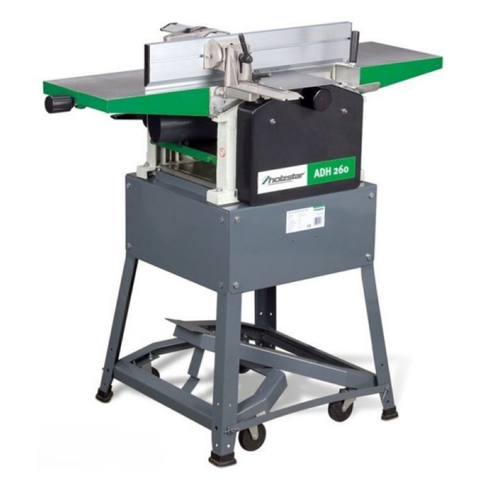 Строгальный фуговально-рейсмусовый станок Holzstar ADH 260 - предназначен для обработки древесины строганием и рейсмусованием, с целью придания им необходимых форм и размеров. Имеет ширину строгания 260 мм, чугунный рейсмусовый стол, два строгальных ножа, встроенный в подставку шасси, а также стальной вал подачи с зубчатой нарезкой и обрезиненый выходной вал.