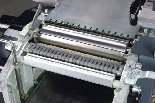 - Обрезиненный выходной вал обеспечивает бережный и аккуратный выход заготовки, это особенно важно при обработке тонкой рейки.