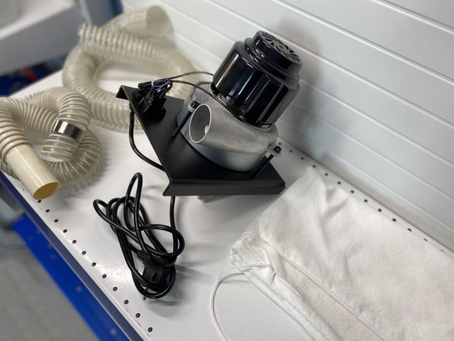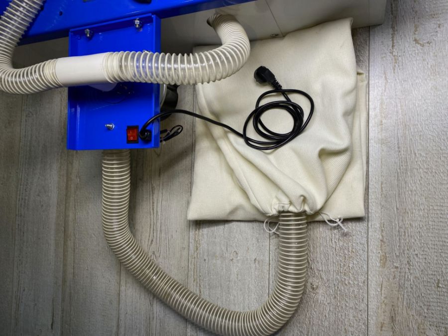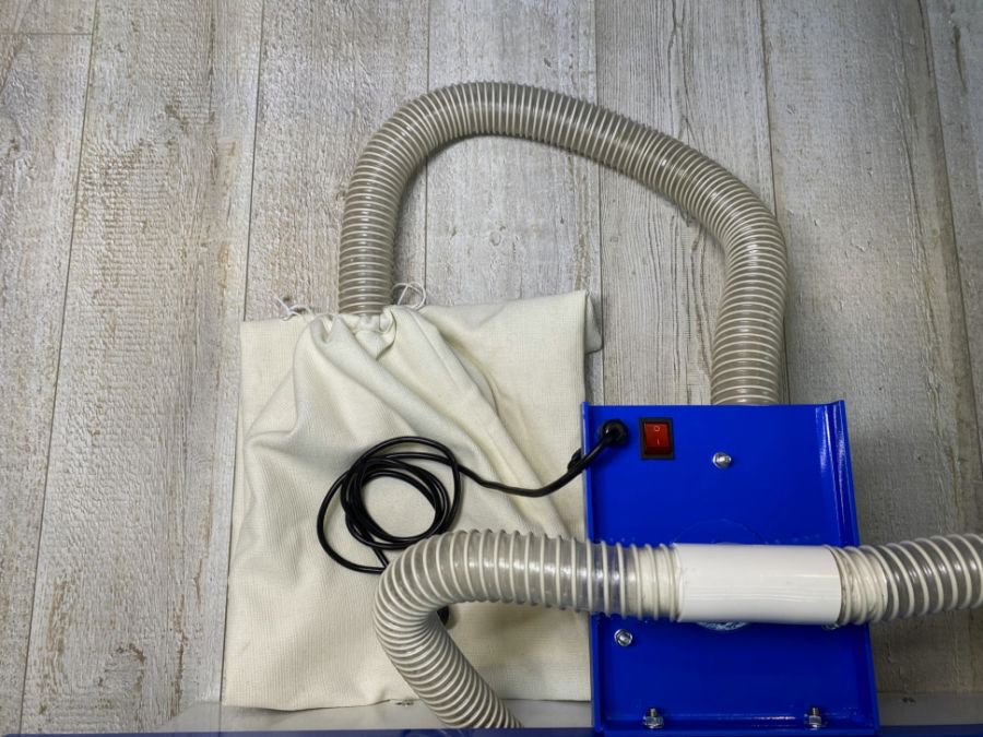 - Агрегат подсоединяется посредством шлангов к станкам. Стружка и опилки собираются в многоразовые мешки.