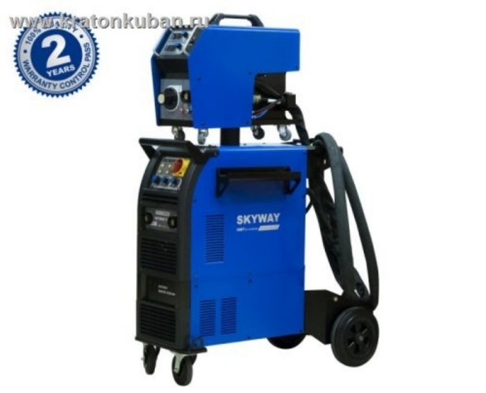 Полуавтомат Aurora Pro Skyway 500 - 3-х фазный синергетический инвертор полуавтоматической сварки в среде защитного газа MIG-MAG, для ручной дуговой сварки штучным электродом MMA, а так же для аргонодуговой сварки в режиме TIG DC. Тележка с подставкой под баллон, высокая компоновка аппарата, встроенная станция охлаждения, подающий механизм "декомпакт" в базовом комплекте поставки - все эти моменты существенно облегчают работу сварщика и значительно увеличивают время непрерывной работы аппарата. SKYWAY – это передовая технология инверторного блока IGBT, отличные сварочные характеристики и превосходная эргономика управления.