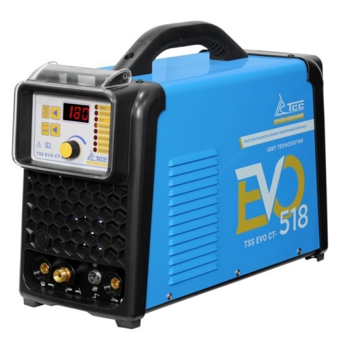 Сварочный аппарат ТСС EVO CT-518 многофункциональный - предназначен для ручной дуговой сварки (MMA), аргонодуговой сварки (TIG) и воздушно-плазменной резки (CUT). Аппарат произведен на базе современной инверторной технологии c использованием мощных IGBT транзисторов, по принципу широтно-импульсной модуляции (PWM). Он отличается стабильной, надежной продолжительной и эффективной работой, портативностью и низким уровнем шума в процессе сварки.