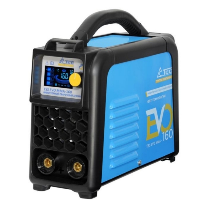 Сварочный инвертор ТСС EVO MMA-160 - с максимальной силой тока в 160 Ампер способен удовлетворить все базовые потребности не только в быту, но и в небольших мастерских. Сварочный аппарат оборудован системой помощи начинающему сварщику, которая подсказывает предпочтительные для качественной сварки диапазоны силы тока в зависимости от диаметра используемого электрода и толщины свариваемого металла. Оборудован отключаемой функцией VRD, которая исключает поражение электрическим током при выполнении сварочных работ. Функции Hot Start и Arc Force позволяют выполнять качественные сварные соединения сварщикам с низкой квалификацией.