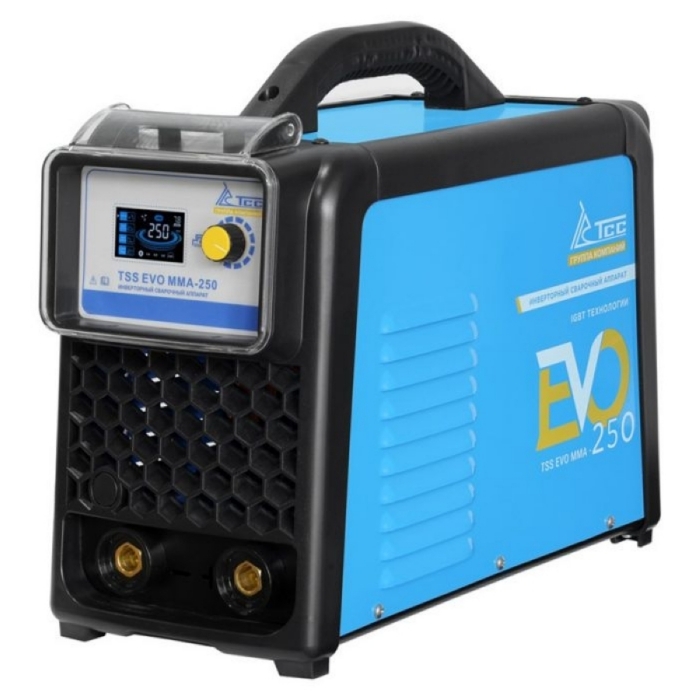 Сварочный инвертор ТСС EVO MMA-250 - с максимальной силой тока в 250 Ампер способен удовлетворить все базовые потребности не только в быту, но и в небольших мастерских. Сварочный аппарат оборудован системой помощи начинающему сварщику, которая подсказывает предпочтительные для качественной сварки диапазоны силы тока в зависимости от диаметра используемого электрода и толщины свариваемого металла. Оборудован отключаемой функцией VRD, которая исключает поражение электрическим током при выполнении сварочных работ. Функции Hot Start и Arc Force позволяют выполнять качественные сварные соединения сварщикам с низкой квалификацией.
