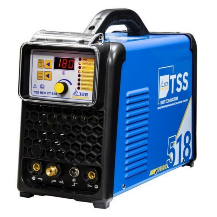 Сварочный аппарат ТСС NEO CT-518 многофункциональный - предназначен для ручной дуговой сварки (MMA), аргонодуговой сварки (TIG) и воздушно-плазменной резки (CUT). Аппарат произведен на базе современной инверторной технологии c использованием мощных IGBT транзисторов, по принципу широтно-импульсной модуляции (PWM). Он отличается стабильной, надежной продолжительной и эффективной работой, портативностью и низким уровнем шума в процессе сварки.