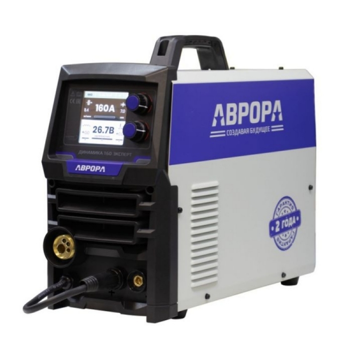 Инверторный сварочный полуавтомат АВРОРА Динамика 160 ЭКСПЕРТ– поможет в решении множества задач от сварки алюминия и нержавеющей стали, до работы с чёрным металлом. Режимы ПУЛЬС и ДВОЙНОЙ ПУЛЬС позволят сваривать изделия на гораздо более «продвинутом» уровне в сравнении с беспульсовыми источниками. Инженеры Аврора постарались оснастить новую линейку в соответствии с многолетним опытом продаж оборудования в России. До запуска серийного производства аппараты прошли длительный цикл тестирования электронных компонентов, силовой части и многократные проверки сварочных свойств. АВРОРА Динамика 160 ЭКСПЕРТ соответствует всем заявленным характеристикам и требованиям европейского стандарта EN60974-1. ЭКСПЕРТ демонстрирует отличные результаты сварки во всём диапазоне настроек. Динамика 160 ЭКСПЕРТ, оснащена 2х роликовым механизмом подачи и ориентирована на работу с 5кг катушками проволоки D200. Отличительной чертой аппарата является европейская логика управления. На главном экране нет лишней информаци, в то же время, сварщик контролирует все основные параметры сварки. Большие, контрастные шрифты легко читаются.