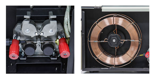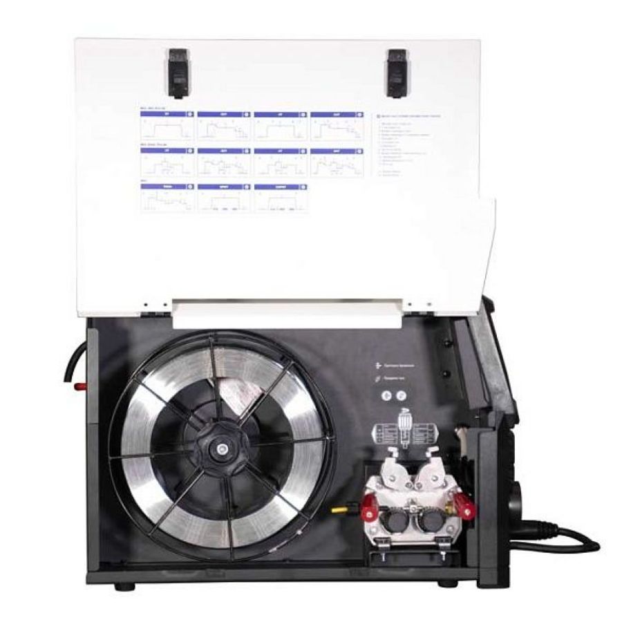 Аппарат оснащён полноприводным 4-х роликовым подающим механизмом 4x4. Большой отсек подающего позволяет устанавливать стандартные бобины D200 и большие бобины D300. В отсеке подающего имеются кнопки продувки газом и протяжки проволоки.