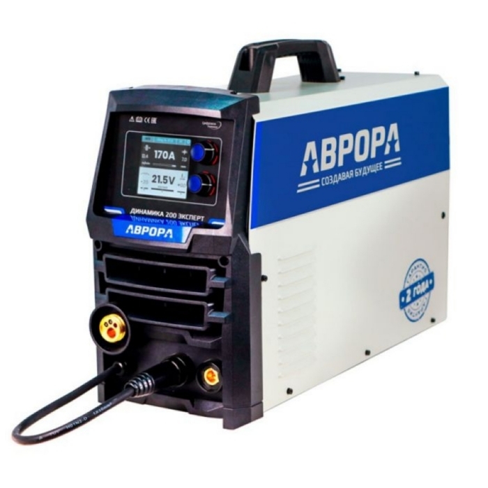 Инвертор оснащён функцией ММА: ANTISTICK предотвращает прокаливание электрода. Отключаемая функция VRD – защищает сварщика при работе в сложных условиях. Горячий старт и форсирование дуги могут быть настроены сварщиком под конкретную задачу. Режим LIFT TIG DC в случае необходимости, поможет в работе для выполнения декоративных швов или при работе с тонкими металлами. Честные характеристики АВРОРА Динамика 200 ЭКСПЕРТ помогут справиться с любой сварочной задачей. Технические особенности: Комплектация: