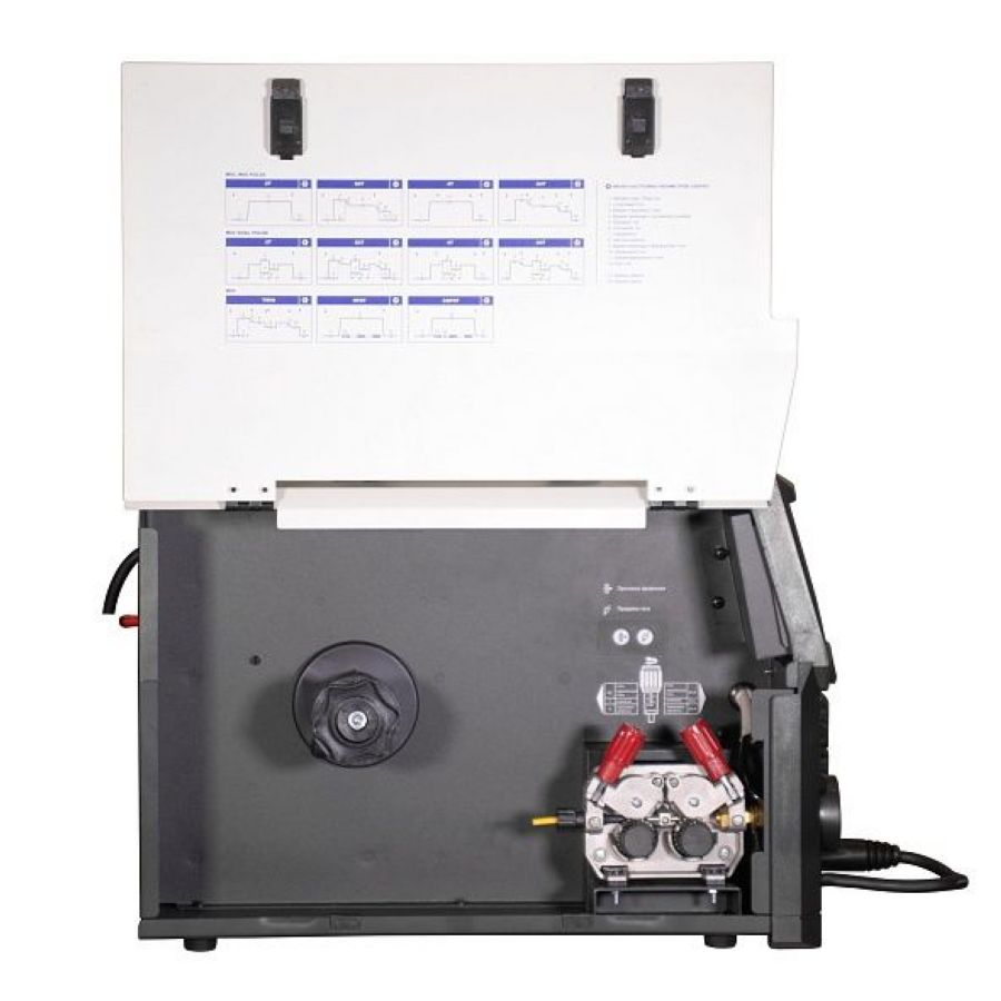 Аппарат оснащён полноприводным 4-х роликовым подающим механизмом 4x4. Большой отсек подающего позволяет устанавливать стандартные бобины D200 и большие бобины D300. В отсеке подающего имеются кнопки продувки газом и протяжки проволоки.