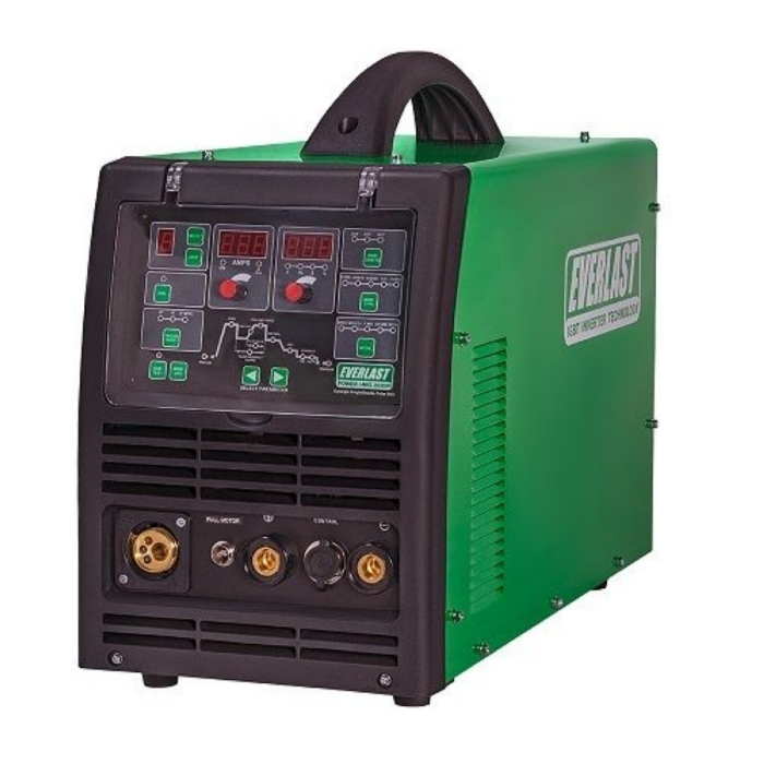 Предприятия и частные лица, которые ищут профессиональный полуавтомат, оценят возможность точной настройки дуги даже в синергетическом режиме, что является отличительной чертой всех синергетических MIG-совместимых устройств Everlast. Данный аппарат может использоваться для сварки алюминия, бронзы, стали или нержавеющей стали. Рабочий цикл 60% при 250 ампер.