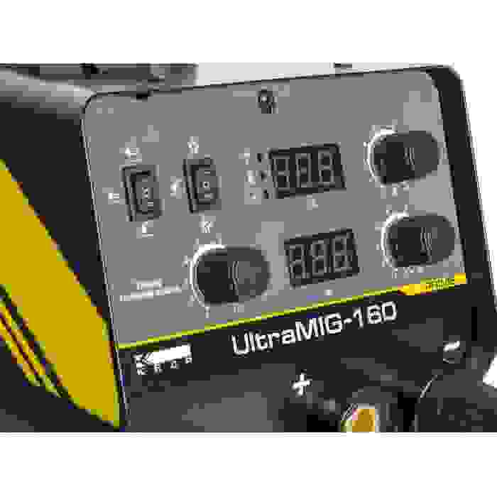 Полуавтомат КЕДР UltraMIG-160 (220В, 30-160А) - предназначен для сварки на малых и средних предприятиях, частных мастерских, а также для использования в домашних хозяйствах. Аппарат выполнен на современных IGBT-модулях, надежно защищенных силовой частью, а высокопрочный металлический корпус позволяет использовать его в тяжелых промышленных условиях. Цифровая панель с дисплеями значительно упрощает работу с данным аппаратом и позволяет снизить классификацию сварщика без потери качества сварки.
