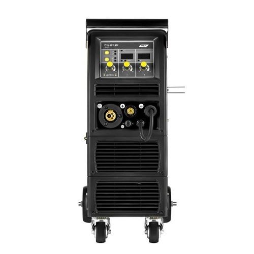 - На передней панели аппарата находится многофункциональный дисплей с возможностью регулировок силы сварочного тока, сварочного напряжения, индуктивности, регулировки скорости подачи проволоки и других параметров сварочного процесса.