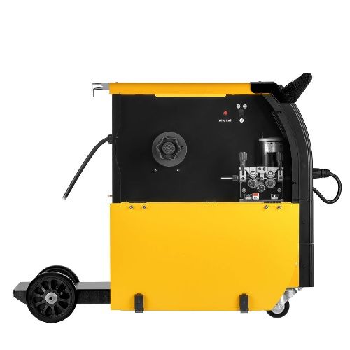 - 4-х роликовый металлический механизм подачи проволоки. Используется сварочная проволока диаметром от 0,8 до 1,0 мм. Возможно установить катушку с проволокой весом до 18 кг (D300) и регулировать скорость подачи проволоки от 3 до 13 м/мин.