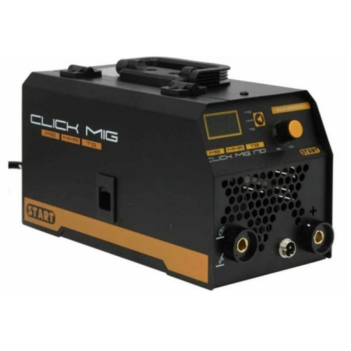 Сварочный полуавтомат START CLICK MIG 170 - универсальный источник, предназначенный для работы в одном из трех режимов: FLUX MIG, MMA, TIG. Установка позволяет работать самозащитной сварочной проволокой.