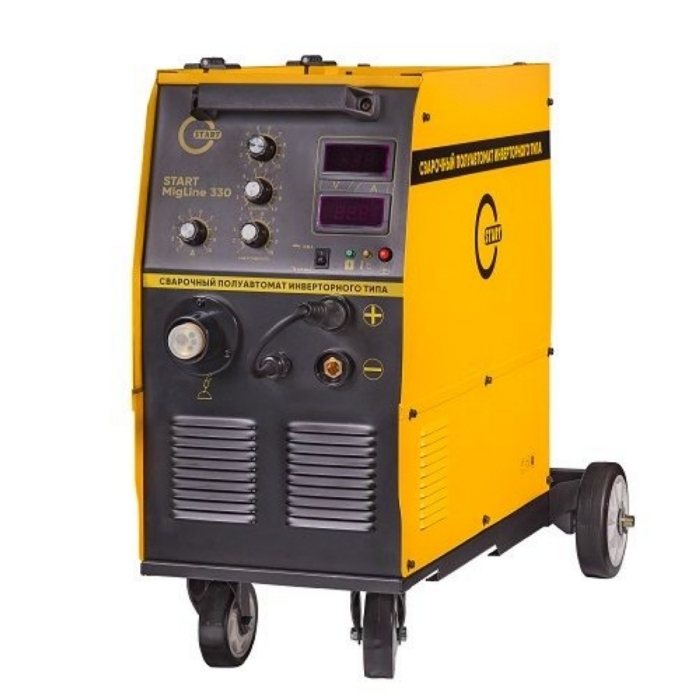 Сварочный полуавтомат Start MigLine 330 - мощный и надежный, выполнен в специальном корпусе на передвижной тележке с возможностью легкой транспортировки данного аппарата, предназначенный для полуавтоматической сварки в среде защитных газов (MIG/MAG) и ручной дуговой сварки MMA.