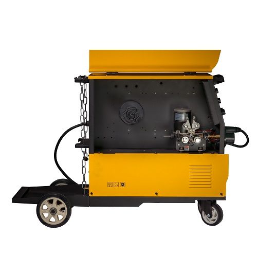 - Специальное исполнение металлического корпуса с тележкой с возможностью легкой транспортировки аппарата и балона с защитным газом по цеху или сварочному участку;
