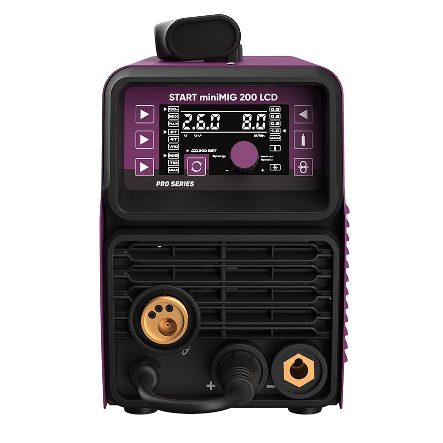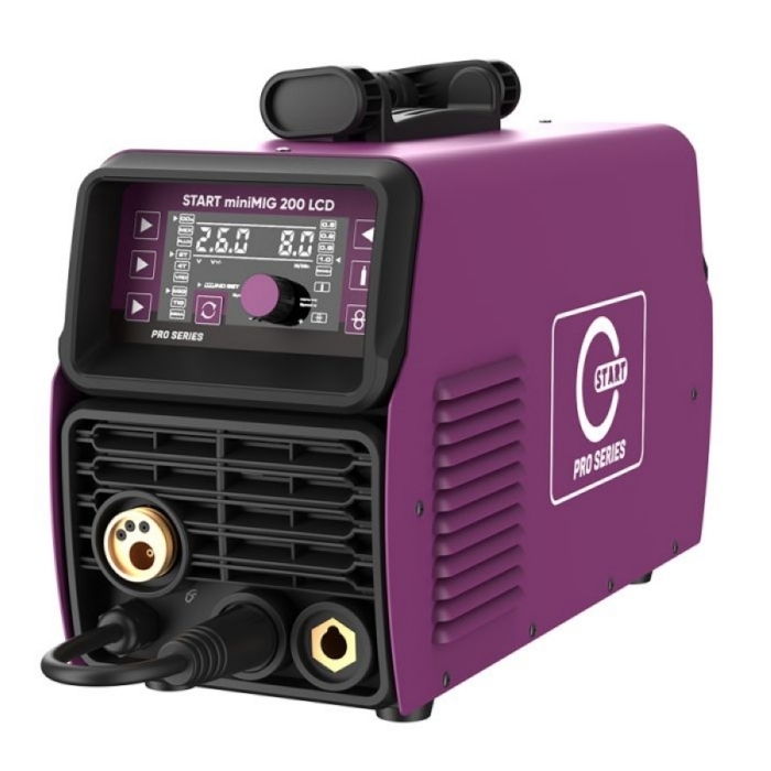 Сварочный полуавтомат START miniMIG 200 LCD - этот обновленный полуавтомат с расширенной комплектацией имеет cинергетическое управление с возможностью ручной подстройки всех параметров, для настройки используется всего 1 регулятор. Аппарат сам подберет необходимые значения для идеального шва. Изменения коснулись диапазона настройки напряжения дуги 7,3V – 26V, такой диапазон позволяет использовать в работе более тонкие металлы, что делает данную модель востребованной в кузовном ремонте. Новинка оснащена большим дисплеем для удобства использования при проведении сварочных работ.
