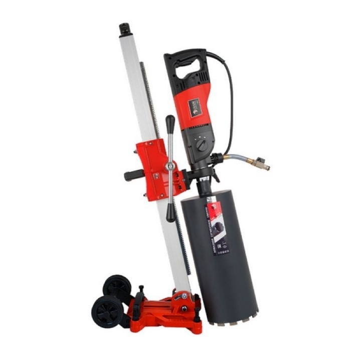 Сверлильная машина Diam ML-180/3А состоит из мощной трехскоростной сверлильной машины, которая применяется для мокрого и сухого сверления сквозных и глухих отверстий в бетоне, железобетоне, кирпичной кладке и других строительных материалах, диаметром от 10 до 180 мм. Электрический двигатель оснащен функцией мягкий старт и электронной защитой от перегрузки. Мощность электромотора 2,3 кВт, напряжение 220 В. Рабочий ход каретки - 600 мм. Вал имеет стандартный хвостовик для крепления алмазной коронки 1/4. Также в комплекте стойка с наклоном и зажимное кольцо для крепления двигателей к стойке.