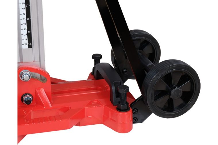 Сверлильная машина Diam ML-350/2AE - профессиональная бурильная установка с наклонной стойкой в комплекте. Оснащена двухскоростным электрическим мотором мощностью 4,88/3,5 кВт, напряжение 220В. Применяется для сверления отверстий в бетоне, железобетоне и кирпиче диаметром до 350 мм. Угол наклона сверлильной стойки 0 - 45°. Рабочий ход каретки 600 мм. Вал имеет стандартный хвостовик для крепления алмазной коронки 1/2 и 1 1/4. Подходит для выполнения работ в большом объеме. Транспортировочные колеса для удобстве перемещения в комплекте. Вес: 16 кг мотор, 25 кг стойка.