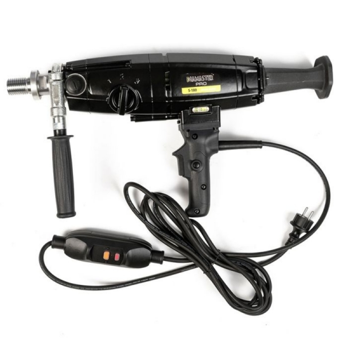 Сверлильная машина ручная Diamaster Pro S-180 - этот агрегат имеет мощностью 2000Вт и отлично подходит для работы с такими материалами, как кирпич, асфальт, бетон, железобетон и пр. Она может применяться вручную или в составе со стойки с посадочной проушиной 60 мм. Используется совместно с коронками диаметром не более 180 миллиметров. Установка предназначена для сухого и мокрого реза. Предусмотрена возможность подключения строительного пылесоса, что позволит существенно снизить пылеобразование. Предохранительная муфта редуктора обеспечивает безопасную эксплуатацию. Имеет три скорости сверления 520/1400/2900 оборотов в минуту.