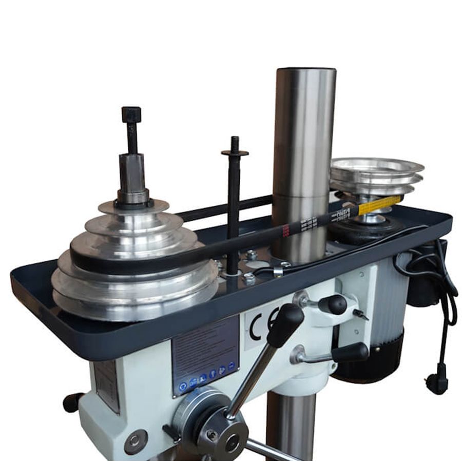- Ход пиноли станка составляет 110 мм. Конус пиноли МТ3. Вылет пиноли можно зафиксировать в нужном положении при помощи рукоятки, которая расположена с левой стороны станка.
