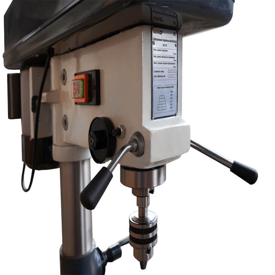 - С левой стороны сверлильной головы расположены кнопки включения и выключения станка.