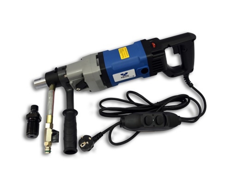 Установка алмазного бурения KEOS KS-130/2 - с виду похожа на большую дрель. Может использоваться как в ручном режиме, так и с применением стойки (штатива). Легкий и компактный мотор. Подходит для сверления бетона, кирпича и других твердых материалов, максимальный диаметр отверстий 130 мм. Стойка (штатив) в комплекте.