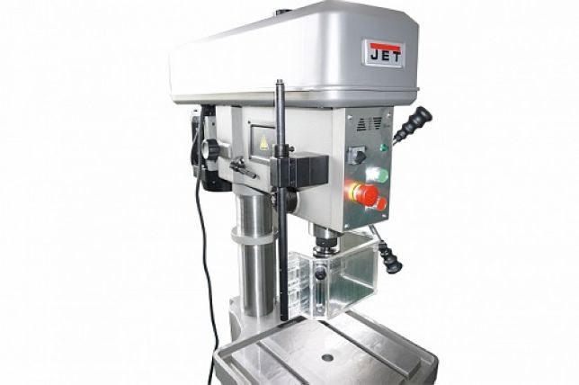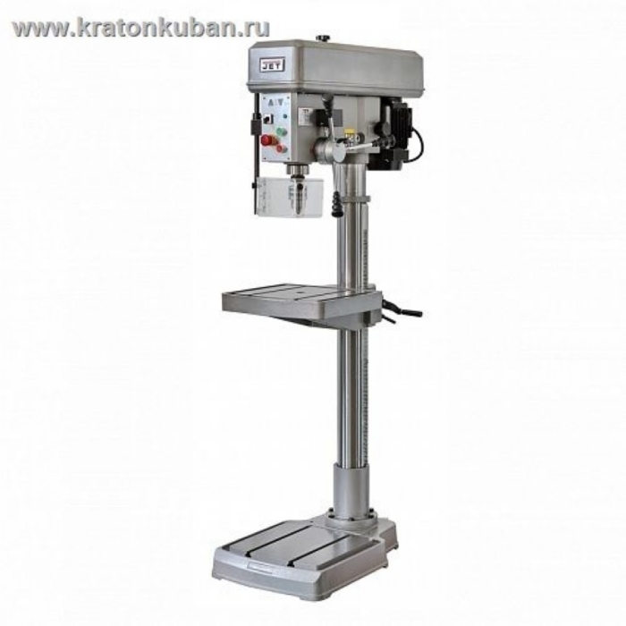 Сверлильный станок Jet IDTP-22 - способен нарезать резьбу в стали, в режиме постоянных нагрузок, до М14. Станок оснащен мощным асинхронным двигателем в 750 Вт и подключается к сети 380 В. Станок предназначен и для сверления как заготовок небольшого размера, которые размещаются на столе, отлитый из серого чугуна, так и заготовок высоких, которые можно закрепить на основании, как же изготовленном из серого чугуна. Максимальное расстояние от шпинделя до основания составляет 1 метр 10 см (1100 мм). На основании предусмотрены два т-образных паза, которые надежно закрепят заготовку или оснастку.