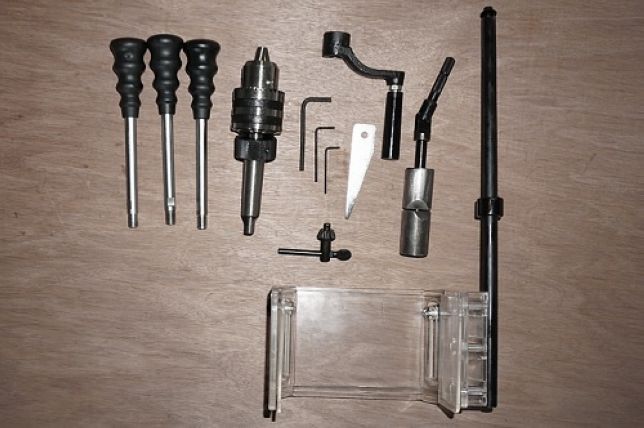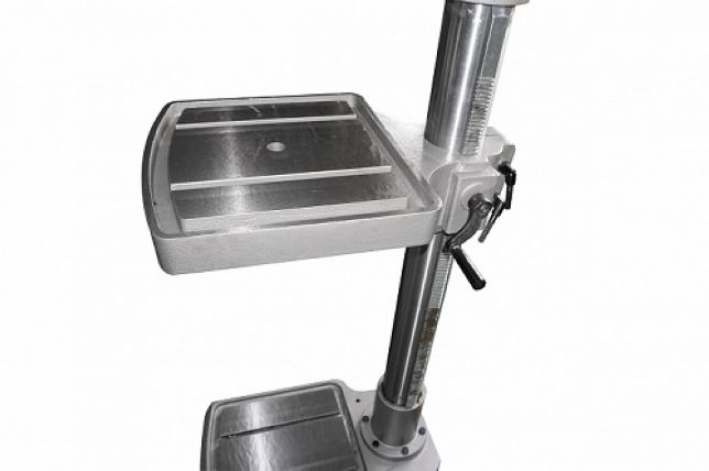 Стол имеет возможность поворота и перемещается благодаря рейке по толстостенной колоне диаметром 70 мм, а также имеет возможность поворота по оси колоны. Конус шпинделя МК-3, что позволяет использовать большое разнообразие сверл с хвостовиками. Кстати станок способен сверлить отверстия в стали до 32 мм. /основная функция станка — это нарезание резьбы. Выставляем нужную глубину захода метчика и станок по достижению оной автоматически меняет направление вращения шпинделя. Все легко и просто. Максимальный ход 134 мм. Минимальные обороты 200 оборотом в минуту. Момент прекрасно сохраняется за счет ременной передачи, а если необходимо использовать термосверла можно развить обороты до 2250 оборотов в мин.