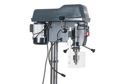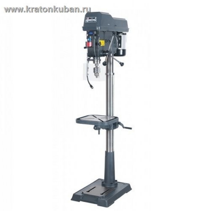 Сверлильный станок Proma E-1720FVL/400 - оснащен конусом Морзе 3 для зажима инструмента, в который можно вставлять сверла, патрон или непосредственно инструмент. Рабочий стол поворачивается на 360° вокруг своей оси и производить его наклон на угол + / - 45° от основной плоскости, что позволяет сверлить отверстия под различными углами. Станок имеет возможность настройки глубины сверления. Регулировка оборотов шпинделя производится за счет вариатора. На лицевой части станка расположен цифровой индикатор оборотов шпинделя. Рабочую зону возможно осветить за счет гибкого светильника, установленного на станке.