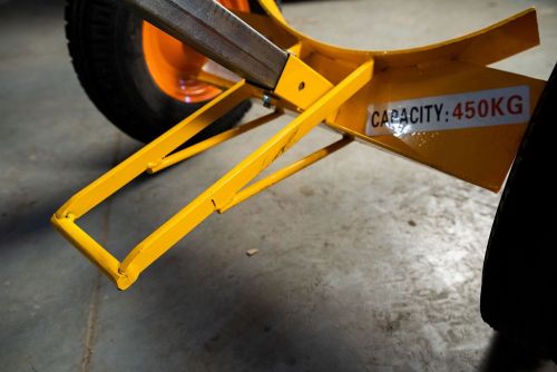 Тележка TOR DE450 состоит из следующих элементов: металлическая прочная рама с ложем для бочки и упором, ручка с автоматическим фиксатором бочки, передвижной автоматический фиксатор кромки (под разную высоту бочки), двух пневматических колес. Грузоподъемность тележки составляет 450 кг – это позволяет перемещать все возможные виды грузов, тарированныхв бочки. Тележка для бочек TORDE450 - отлично подходит для перевозки пластиковых и металлических бочек. Простая конструкция тележки и автоматический зацеп позволяет очень быстро погружать бочку на тележку. Принцип действия захвата очень прост. Заводим нижнюю часть зацепа за кромку бочки, тянем тележку на себя создавая усилие на зацеп, верхняя часть которого автоматически прижимает верхнюю кромку бочки, полностью поднимаю бочку за кромку. Тележка TORDE450 состоит из следующих элементов: металлическая прочная рама с ложем для бочки и упором, ручка с автоматическим фиксатором бочки, передвижной автоматический фиксатор кромки (под разную высоту бочки), двух пневматических колес. Грузоподъемность тележки составляет 450 кг - это позволяет перемещать все возможные виды грузов, тарированныхв бочки.
