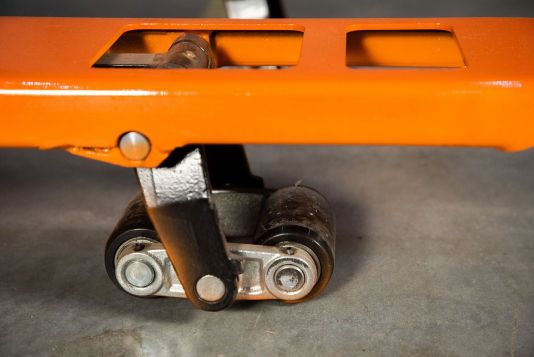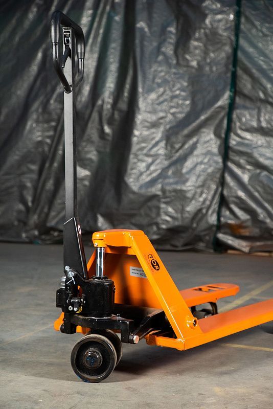 Низкопрофильная тележка TOR BFL позволяет работать с низкими паллетами из Америки и Китая. Высота подхвата этой тележки одна из самых низких на рынке и составляет всего 35 мм. Для обеспечения таких показателей высоты подхвата используются самые маленькие ролики размером 35 на 60 мм что сказывается на клиренсе и грузоподъемности. Клиренс составляет всего7 мм, поэтому при погрузке и разгрузке важны ровные полы без сильных перепадов. Грузоподъемность тележки составляет 1 тонна.
