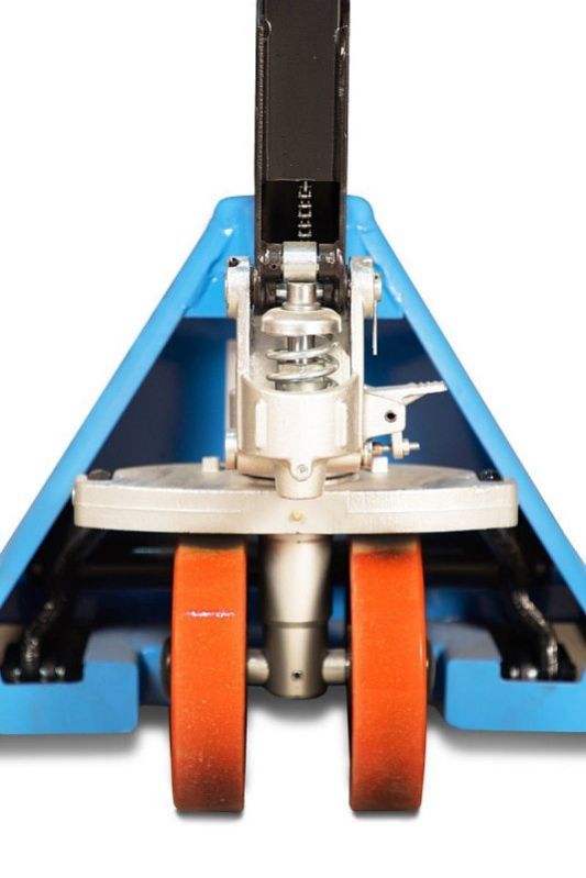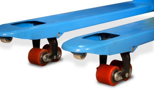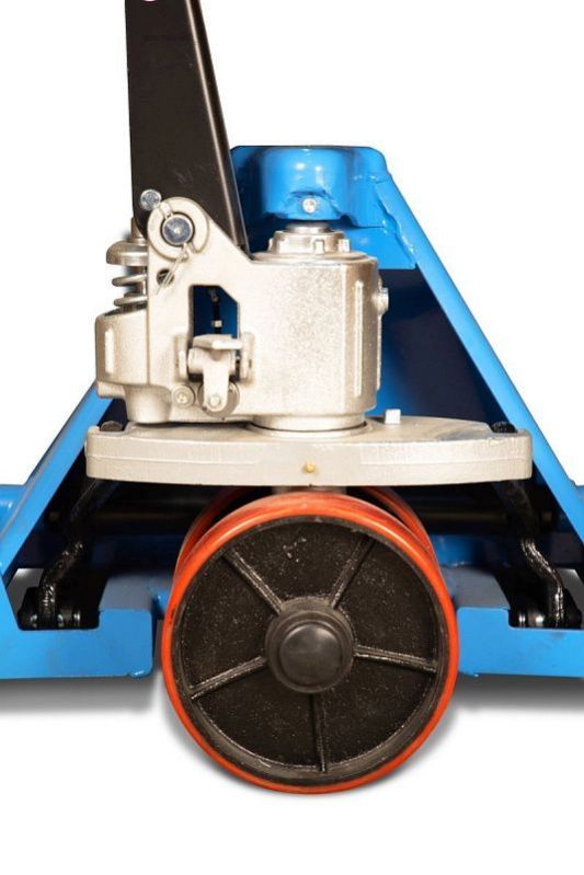 Данная модификация тележки RHP поставляется с усиленными по все длине вилами. Усиленные вилы значительно увеличивают срок службы тележки. Если вы постоянно работаете с тяжелыми грузами, то выбрать стоит эту тележку. Грузоподъемностью 2,5 тонны – для обработки грузов на стандартных евро паллетах. Износостойкие полиуретановые колеса увеличивают срок эксплуатации тележки до замены колес.