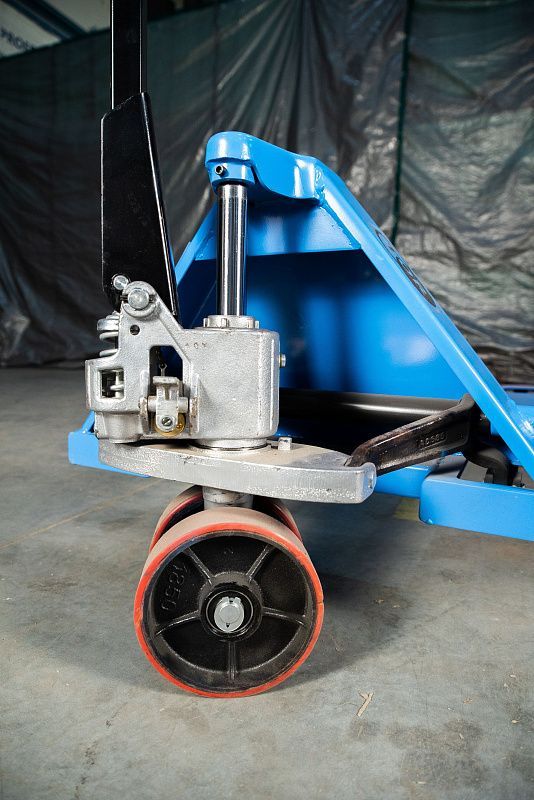 Тележка гидравлическая TOR RHP(B. При определенных условиях необходима тележка с широкими вилами, которая сможет эффективно работать с нестандартной тарой. Только такой тележкой можно работать с американскими паллетами у которых усилены середина паллеты. Если такие типы поддонов вам встречаются часто, то тележка TORRHP широковильная для вас. Ширина вил у данной тележки достигает 685 мм при грузоподъемности 2,5 тонны.