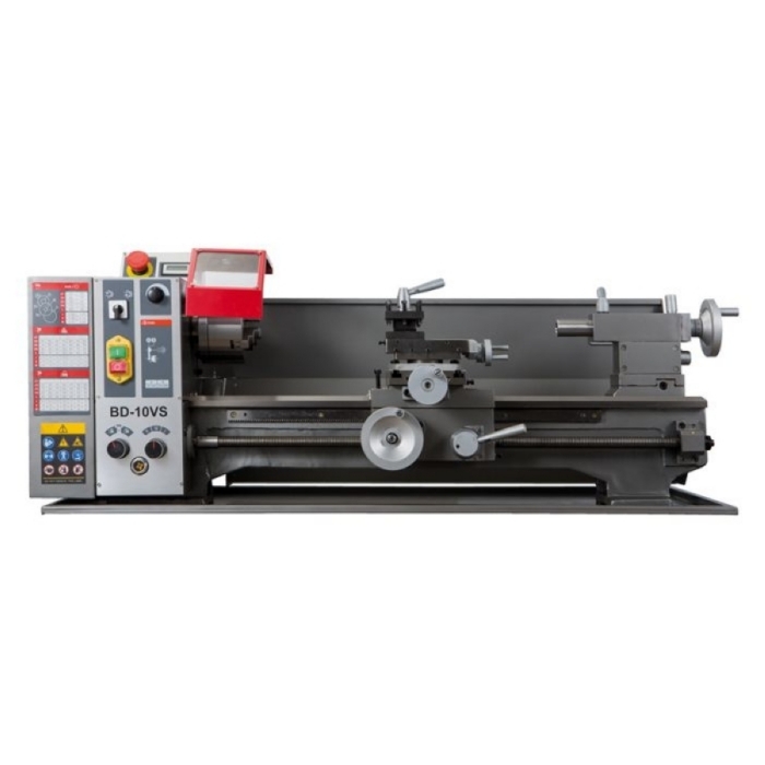 Токарный станок по металлу Jet BD-10VS - максимальный диаметр обработки на станке составляет 250 мм, максимальное расстояние между центрами составляет 500 мм, а диаметр обработки над суппортом 140 мм и для того, при этом станок подключается к бытовой сети 220 В, а это значит станок можно использовать дома, в гараже, в мастерской и Вам не понадобится 3-х фазная сеть. Мощный двигатель 1,1 кВт обеспечит прекрасную обработку на станке и будет вращать шпиндель с конусов Морзе МК-4 в двух диапазонах, с плавной регулировкой, от 50 до 1250 оборотом в минуту и от 100 до 2500 оборотов в минуту.