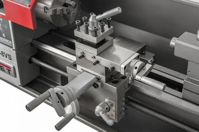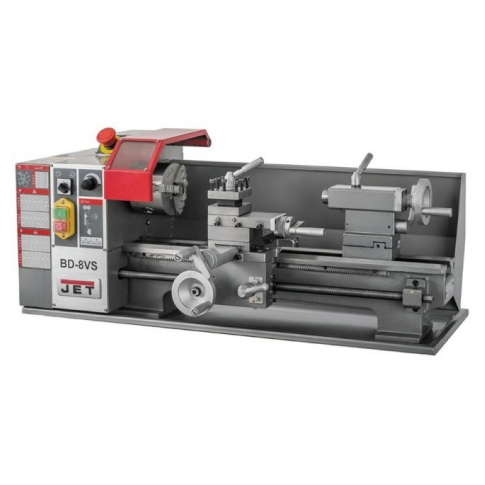 Токарный станок по металлу Jet BD-8VS - относится к классу настольных токарных станков. Станок поставляется с поддоном для сбора стружки и через поддон прикручивается к тумбе или верстаку. Несмотря на свои маленькие габариты станок способен обрабатывать заготовку диаметром до 210 мм над станиной, а если точить над суппортом, то этот диаметр уменьшается до 135 мм. При этом максимальная длина обработки (РМЦ) составляет внушительные 400 мм.