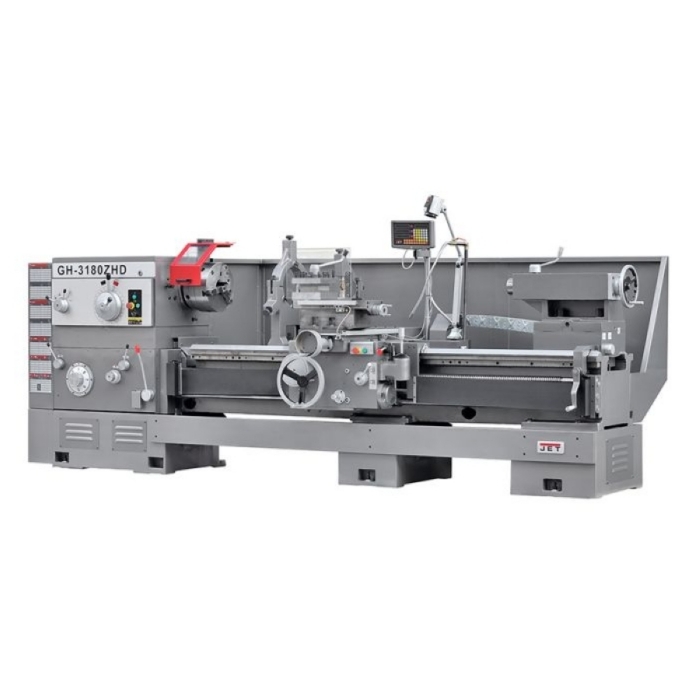 Токарный станок по металлу Jet GH-3180 ZHD RFS - предназначен для обработки массивных и длинномерных заготовок из различных сортов стали, сплавов или цветных металлов, который может работать в условиях длительных и тяжелых нагрузок. Станок изготавливается в строгом соответствии с протоколом DIN 8606, что обеспечивает соблюдение всех технологических допусков и норм, а также обеспечивает его обязательной гарантией в странах Таможенного союза ЕАЭС. Наилучшим местом применения станка станут металлообрабатывающие предприятия промежуточного и полного цикла, предприятия оборонной отрасли, крупные ремонтные мастерские. Как и у всех представителей данной серии, диаметр обработки над станиной равен 800 мм, со съемным мостиком - до 1000 мм (с ограничением до 310 мм по длине обработки). Главное отличие данной модели - расстояние между центрами, у GH - 3180 ZHD DRO оно увеличено до 2000 мм. Для обеспечения стабильной и эффективной работы с заготовками увеличенного размера и массы станок оборудован асинхронным электродвигателем мощностью 11 кВт. Он способен обеспечить вращение шпинделя на скоростях от 7,5 до 1000 об/мин, необходимую скорость можно выбирать из заранее предустановленных диапазонов. Автоматическая коробка подач имеет 65 предустановленных режимов в обеих плоскостях, что позволяет нарезать все типы резьб.