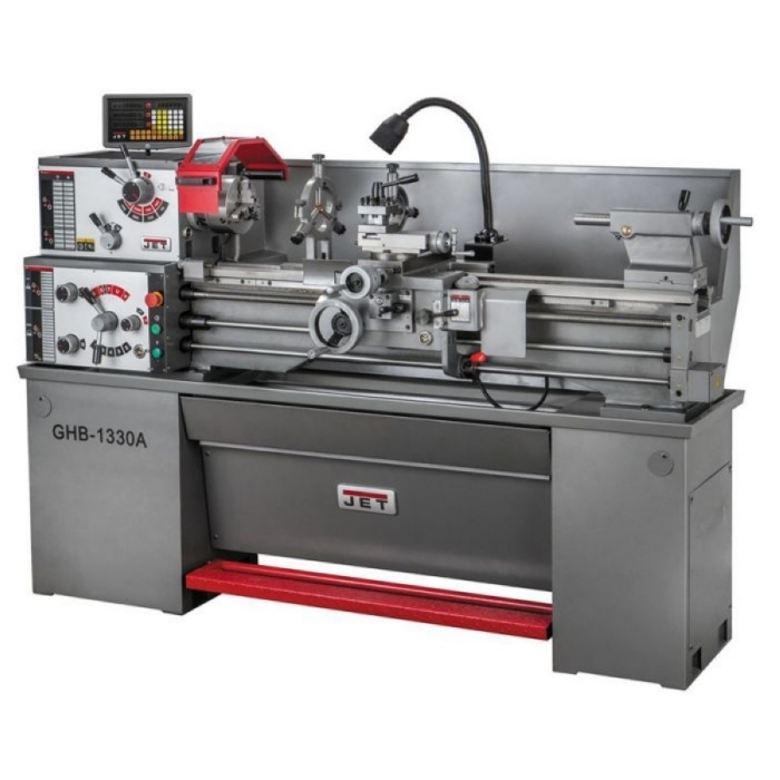 Токарный станок по металлу Jet GHB-1330A DRO - позиционируется компанией JET как профессиональное оборудование для мастерских, автосервисов, небольших предприятий и домашних специалистов по обработке металла. По своей сути, это GHB-1330 A, дооборудованный устройством цифровой индикации (УЦИ). При использовании такого устройства существенно повышается точность обработки и, как следствие, снижается процент возможного брака. Данное оборудование выпускается по промышленному стандарту DIN 8606 (соответствие всех параметров и допусков для станков средней точности). На станке можно обрабатывать заготовки диаметром 330 мм над станиной или 197 мм над суппортом. Скорость оборотов шпинделя от 70 до 2500 об/мин, расстояние между центрами составляет 760 мм. Мощность двигателя 2800 Вт.