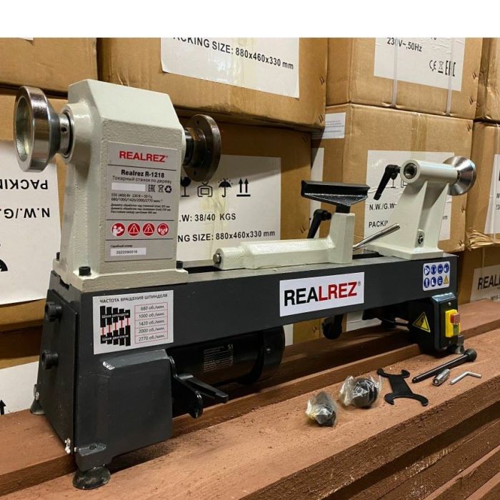 Токарный станок REALREZ R1218 это улучшенная версия популярного станка с двигателем 550 Вт. Модель широко востребована на производстве мебели или в частных столярных мастерских.Наличие упора и компактные размеры позволяют быстро настроить рабочее место.