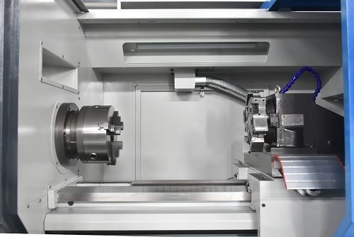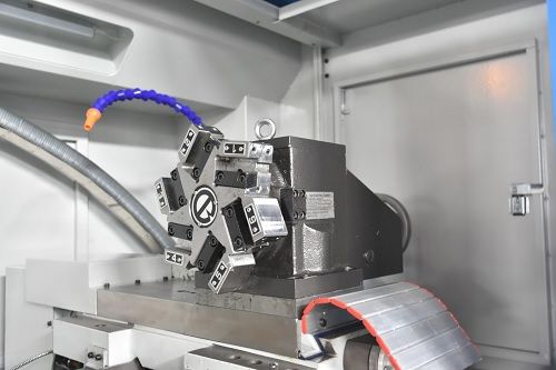 Станок оснащен высокоточным шпинделем, можно установить механические, гидравлические и цанговые патроны, что обеспечивает универсальные возможности обработки. Шпиндель оснащен двойным рядом роликовых подшипников в сочетании с радиально-упорными шарикоподшипниками, которые выдерживают радиальные и осевые нагрузки.