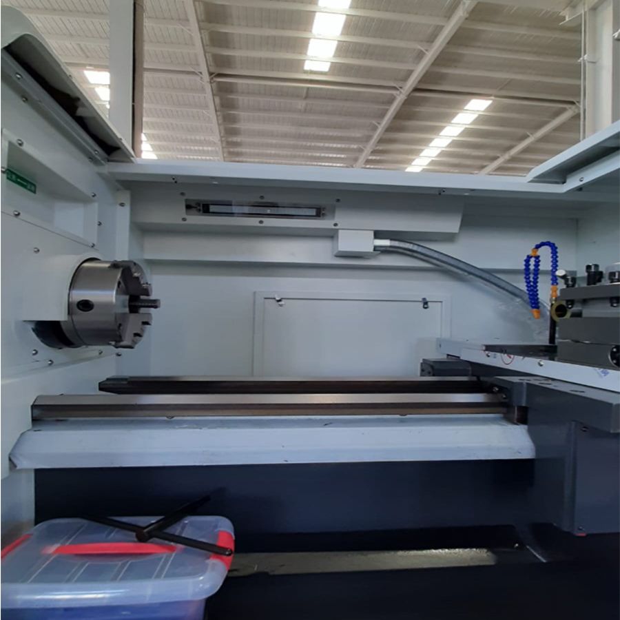 Токарный станок с ЧПУ REALREZ CK 6150х1000 GHM4 – конструкция этого станка базируется на использовании проверенных временем технологий: направляющие скольжения и двухдиапазонная механическая коробка передач с автоматической регулировкой скорости вращения шпинделя в пределах установленного диапазона. Усиленная утяжелённая станина обеспечивает высокую жёсткость всей конструкции.