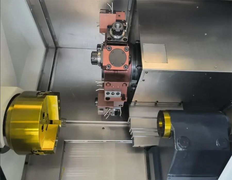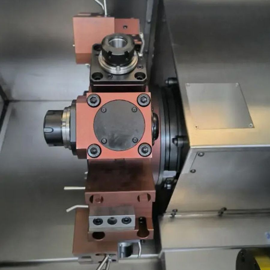 Модель укомплектована приводным инструментом, обеспечивающим как радиальную, так и осевую обработку. Благодаря этому функционалу, оборудование может эффективно использоваться в качестве токарно-фрезерного центра.