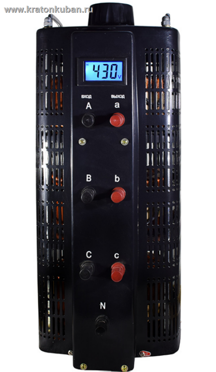 Автотрансформатор ЛАТР Suntek 15000ВА (20А) - трехфазный прибор с ЖК-табло, позволяет получить на выходе напряжение (линейное) от 0 до 430 Вольт. Максимальный ток на фазе 20 А.